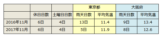 売上高は3.9%、客数は1.0%、客単価2.8%、店舗数0.7%とすべて前年を上回った。11月は、穏やかな天候の地域が多かったことで客数は増加した。雨天日数は大阪府は1日、東京は前年より8日も少なかった。気温は前年並みだった。