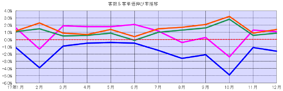 2017年は、カウンター商材および弁当・惣菜などの中食、またデザート・冷凍食品が好調に推移した。少子高齢化、単身世帯・共働き世帯の増加など、ライフスタイルの多様化に応えて、これら即食・簡便商品の品揃えを強化したことが大きい。しかし、既存店の客数の減少が売上げにも影響を及ぼした。