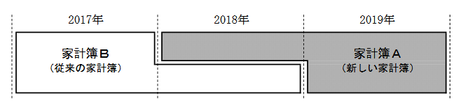 しかし、毎月の調査結果の集計値に影響を与える可能性があるため、2018年は、全国の調査世帯を二分し、半数の調査世帯では新しい家計簿「家計簿A」を、半数の調査世帯では引き続き従来の家計簿「家計簿B」を使用している。