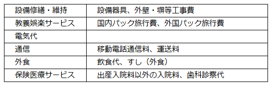 1月の消費支出に寄与した主な品目は以下の通り。国内・海外ともにパック旅行費が入っているのは、冬休み・年末年始休暇で旅行者が増加したからだろう。また外食で寿司の需要が多かったのは、正月や新年会需要によるものだろう。