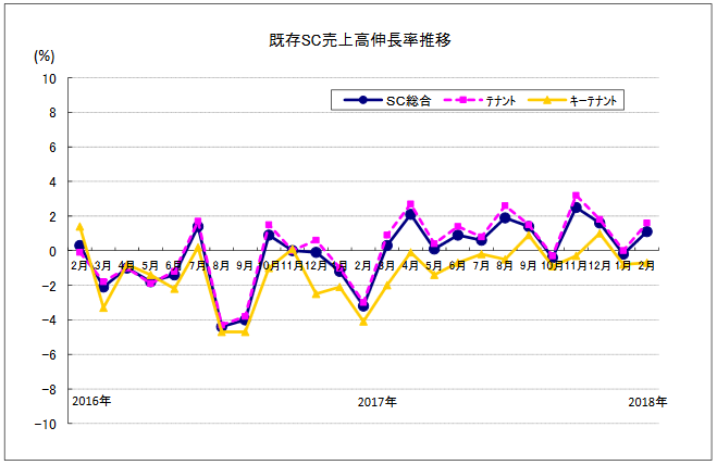 「2月のショッピングセンター(SC)販売統計調査」が一般社団法人日本ショッピングセンター協会から発表された。