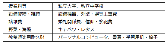 2月の消費支出で前年同月よりも増加したのは、食料、光熱・水道、家具・家事用品、被服および履物、交通・通信の5項目。一方、減少したのは、住居、保健医療、教育、教養娯楽、その他。