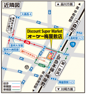 一方のオーケー梅屋敷店は、京急本線梅屋敷駅と大森町駅からそれぞれ5分という中間点の線路沿いに出店する。所在地は東京都大田区大森西6丁目。