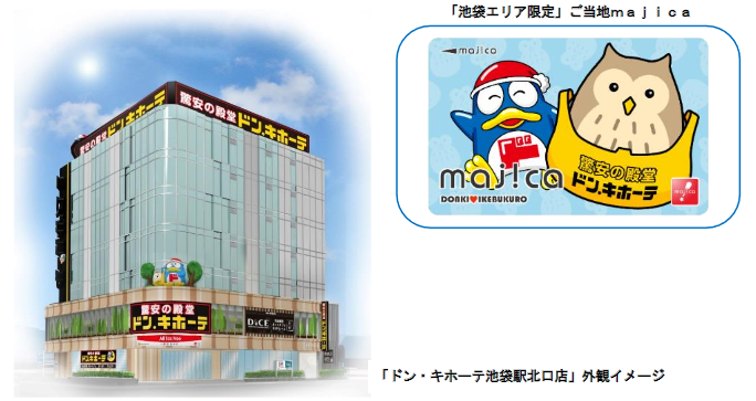 外観は、池袋に馴染みのあるフクロウとドン・キホーテ公式キャラクター「ドンペン」を使った演出を施す。またドン・キホーテグループオリジナルの電子マネー「majica(マジカ)」の池袋エリア限定デザインを発行して、豊島区の3店で販売する。