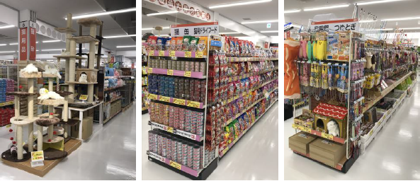 こうした商圏特性を踏まえて、ペット売場を同等面積の既存店比較で2割拡げた。スーパービバホームと同等のペットフードとペット用品を品揃えしている。とくにペットのおやつや療法食の商品構成を強化している。