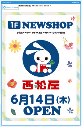 (株)西松屋チェーン(兵庫県姫路市、大村禎史社長)は、6月14日(木)に、リソラ大府ショッピングテラス1階へ出店した。