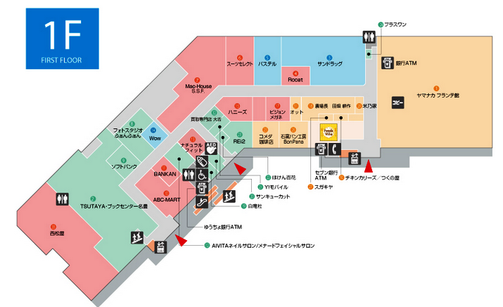 西松屋が出店する1階フロアには、核店舗として食品スーパーマーケットのヤマナカフランテ館、TSUTAYAブックセンター名豊、サンドラッグ、コメダ珈琲店などが入居する。また2階はしまむらのベビー・子ども服のバースデイ、ファッションセンターしまむら、ダイソー、保育園、スポーツクラブなどで構成されている。