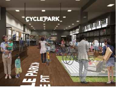 スポーツサイクルを楽しむ人が多い地域需要に対応できるよう、サイクルパークでは、カスタマイズをアドバイスできる専門スタッフを配置する。またパークと名付けているように、サイクリング途中に立ち寄って情報収集をしたり、チューンナップできるようなコミュニティスペースを目指す。