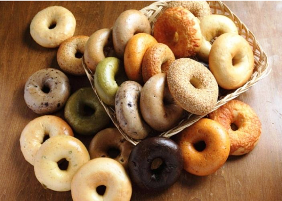 ベーグルは東欧系ユダヤ人のパンで、通常のパンとは違って、バター、卵、牛乳を基本生地に使用しない。だから他の一般的なパンと比べると脂肪分やコレステロール値が低い。アメリカやヨーロッパでも一般にパンの一種として定着している。