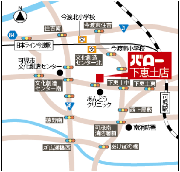 同店は、可児市中心部から西側に位置する。JR太多線「可児駅」、名鉄広見線「新可児駅」から北西へ0.8km、名鉄広見線「日本ライン今渡駅」より南東へ1.1kmの場所だ。商圏は、周囲の約1万2400世帯・人口約3万3000人を想定する。