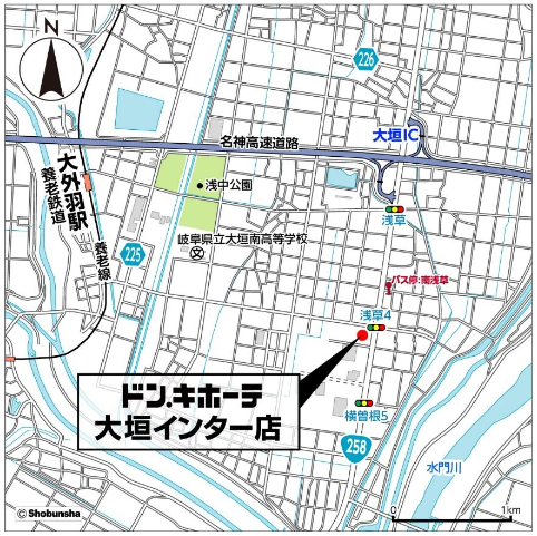車:国道258号線沿い大垣I.Cから車で約3分、浅草4人交差点付近