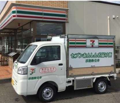 福島県双葉郡広野町は、2011年に発生した東日本大震災の影響によって全町避難が余儀なくされ、震災前5400名の町内居住者が一時は240名まで減少した。2012年3月31日に避難指示解除が出され、その後は帰町が進んでいるが、日々の買物に不便・困難を感じている住民が増加している。セブン-イレブンではこうした住民の支援策として移動販売車を走らせる。