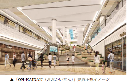 1〜4階の4フロア構成で、建物中央部には吹き抜け空間があり、この施設のシンボルとなる幅約9メートル、長さ約20メートルの大階段「OH KAIDAN(おおかいだん)」が設置される。