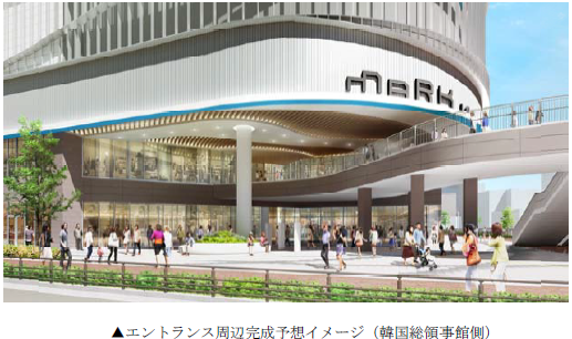 施設の南東側と南西側にある既存歩道橋と同施設の2階を接続することで、歩道橋からそのまま施設に入館できるようになる。また、隣接する「福岡ヤフオク! ドーム」まで行き来できるペデストリアンデッキ「MARK IS デッキ」も整備される。