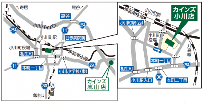 近くには、小川町役場、小川小学校、日赤病院などが立地する地域だ。既存の「カインズ嵐山店」とでドミナント化を進める。
