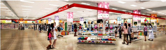 イトーヨーカドー四街道店は2層建てで、1階が、食品・暮らしのフロア、2階がファッション・キッズタウンのフロアだ。アカチャンホンポはこの2階にオープンする。