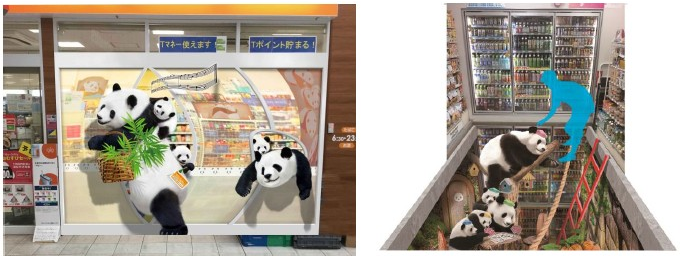 「トリックアート」の主役は「パンダ」である。店内外で遊んでいるパンダの姿をリアルなイラストのラッピングで描く。また、パンダがリアルに見える角度が設定されていて、SNS映えする写真を撮ることができる。