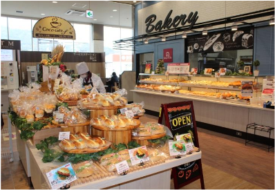 直営のインストアベーカリー「Coco Panette(ココパネッテ)」では、手頃な価格で焼きたてパンを提供する。イートインコーナーも併設する。