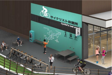 サイクリストの聖地「しまなみ海道」が同店から約1kmと近いため、サイクリストの休憩所として、テーブルや椅子、ロードバイク専用の駐輪スペースを設ける。タイヤの空気入れや携帯電話などが充電できるコンセントを用意して、自転車愛好家たちの来店を促していく。