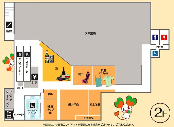 売場/1階:ライフ、2階:ライフ・スギ薬局・マルミヤクリーニング