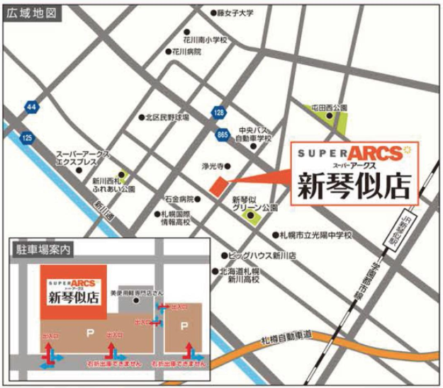 札幌市北区新川地区には、ディスカウント型のビッグハウス新川店、小型のスーパーアークスエクスプレスの既存店があり、同地区へは3店目の出店となる。異なるコンセプトの3店舗で同地区の需要を押さえていく。