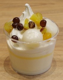 「モーモーチャーチャー」とは「ごちゃまぜ」を意味し、マレーシアなどで親しまれているデザート。成城石井でも大人気の自家製商品。牛乳・砂糖・生クリーム・ココナッツピューレなどからつくったココナッツブラマンジェとアングレーズソースをベースとしたムースの上に、「成城石井牛乳」でつくったソフトクリームをのせた。上からさつま芋の甘露煮・黒豆・赤えんどうかのこ・自家製の羽二重餅をトッピング。「ゲートシティ大崎店」でしか味わうことのできない、限定スイーツ。499円。