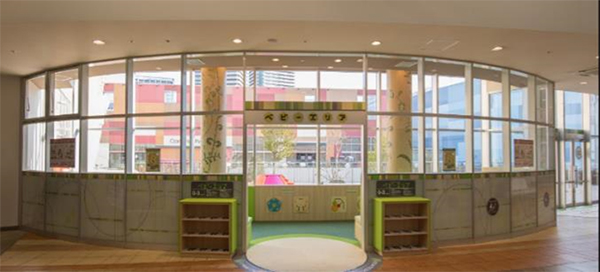 第4は、イベント広場「センタープラザ」に人工芝を敷設し、スポーツイベントのパブリックビューイングや音楽イベントをより快適に楽しめる集いの場とする。隣接するベビールームには、乳幼児向けに壁付け玩具を、未就学児向けに滑り台を新設している(2018年春実施済)。