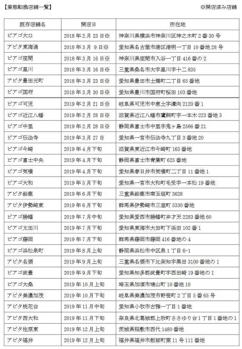 ダブルネームの業態転換店舗は、2019年12月までに、ピアゴ18店舗、アピタ10店舗の28店舗をオープンする計画だ。そのうち、9店舗は2月末までに営業を開始している。