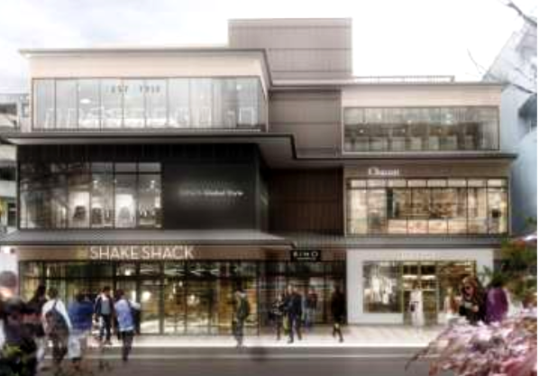 1階北側にはニューヨーク発のハンバーガーレストラン「シェイクシャック」、南側には、ラグジュアリーなドレスクロージングからカジュアルウエアまで、幅広いアイテムを揃える「ストラスブルゴ」が出店する。