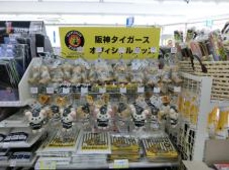 1号店は、店頭看板や店内を阪神タイガースの黄色と黒色のイメージカラーでデザインして、メガホンやシーズンロゴ入りTシャツなどのオフィシャルグッズを販売している。オープン以来阪神タイガースファンが来店する繁盛店だ。