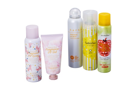 ⑴紫外線が気になる季節におすすめのUV対策グッズを取り揃える。「オハナ UVセラム ピカケアウリィ」(1728円:税込、以下同じ)、「サボリーノ おはようサンカット UVスプレー」(1080円)、「プレシャスUV リボンペーパーブレード ハット」(3024円)など。