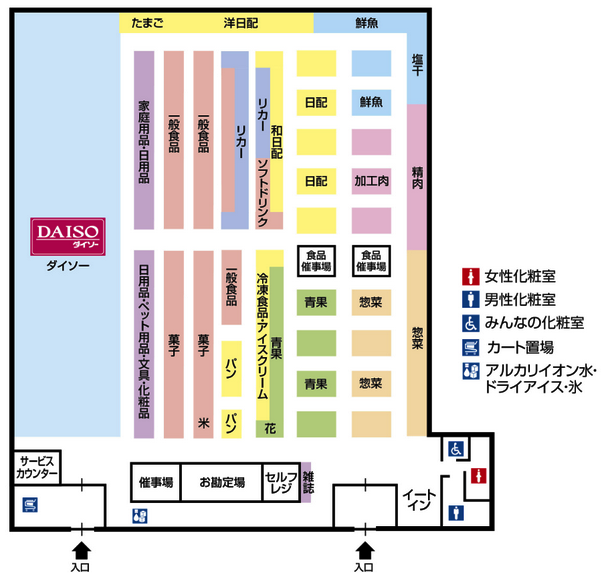 生活関連商品は、日用品や家庭用品を中心に取り揃え、ダイソー部門も導入する。