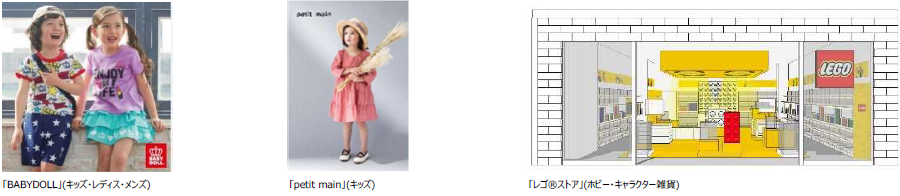 「BABYDOLL」、「MARKEY’S」、「petit main」などのファッションから、「レゴ®ストア」、「こども写真スタジオれもん館 千代田振袖館」まで、県内随一の規模で子ども関連ショップを集積する。