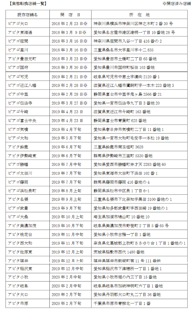 パン・パシフィック・インターナショナルホールディングス(旧ドンキホーテホールディングス)グループでは、2023年までに、アピタ・ピアゴ約100店舗をダブルネーム店舗への業態転換する方針を打ち出している。すでに10店舗が完了している。