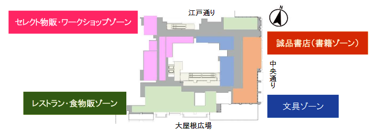 フロアは「誠品書店(書籍)」「文具」「セレクト物販・ワークショップ」「レストラン・食物販」の4ゾーンで構成される。書籍ゾーンで「誠品書店」独自の読書文化を提案する。日本初進出5店舗を含む約50の台湾ブランドや、日本をはじめ世界中から洗練されたアイテム、フード、ワークショップを揃える。
