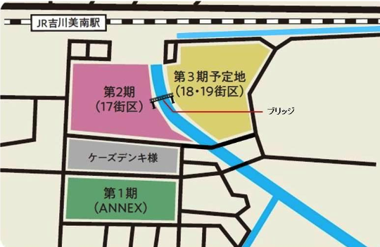 続いて2017年9月には、第2期(17街区)をオープンした。核店舗の「イオン吉川美南店」をはじめ、暮らし、子育て、コミュニティをサポートする29店舗を誘致した。敷地面積は4506坪で3階建てだ。