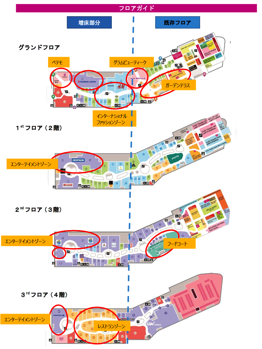 小売市場の成長著しいベトナムでは、顧客のニーズも急激に変化している。その変化に対応するために、敷地面積は2倍の2万1212坪に、駐車場は4倍の2000台分を確保、専門店は80店舗をプラスして200店舗となる。