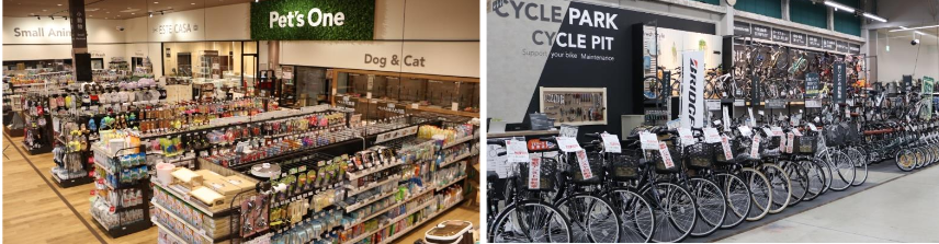 ペット飼育者が多い地域ニーズに対応してペットコーナーを拡充する。新たにトリミングブース、ペットホテル、セルフウォッシュブースを設置する。