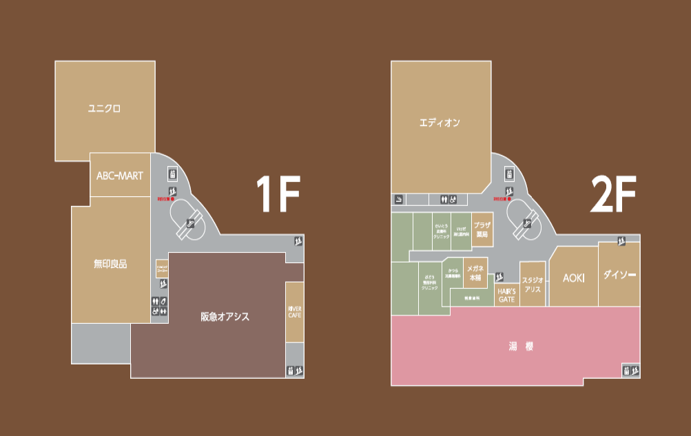 敷地面積約3万1007㎡に地上3階建ての施設で、1階、2階が商業フロアになる。1階に阪急オアシス、ユニクロ、無印良品、ABCマート、2階にエディオン、ダイソー、AOKI、温浴施設、そしてH2O保育園・医療モールなどが入る。
