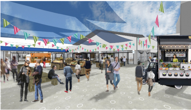 場所は、横浜市が2015年3月31日に廃止した南部市場(1973年開設)の跡地だ。跡地の再開発は、中央卸売市場の本場を補完する加工・配送、流通の場として活用する「物流エリア」(約12万2000㎡)と、公募事業者の提案・整備により活用する「賑わいエリア」(約4万7000㎡)に分けられて行われた。この賑わいエリアの事業者として大和リースが選定された。