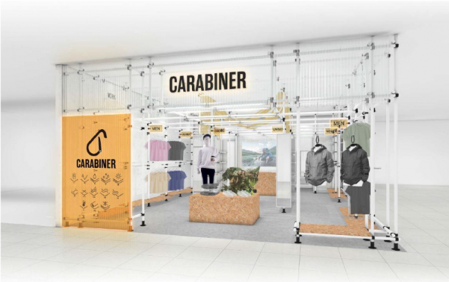 目玉は、2階に島忠が運営するオリジナルのアパレルブランド「CARABINER」(カラビナ)だ。「CARABINER」は、「My Utility Wear 夢中になれる服」をコンセプトに、顧客にリラックス・ストレスフリーを提供する島忠初のカジュアルウェアブランドだ。商品は撥水・吸水速乾・防寒などの機能性と耐久性を兼ね備えた素材を中心に、シンプルでスタイリッシュなデザインを採用してリーズナブル価格で提供する。