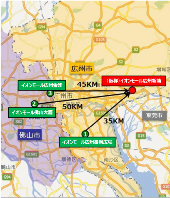 イオンモールは2019年9月末現在、中国国内に20モールを展開する。広東省では、2015年の「イオンモール広州番禺広場」、2017年の「イオンモール佛山大瀝」、2018年の「イオンモール広州金沙」に続く4施設目になる。