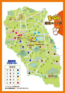 同社と綾川町、綾川商工会との三者間で、2019年6月に移動販売に関する協定を締結している。その協定に基づき、火曜日と日曜日を除く週5日、曜日ごとに設定したルートで綾川町内を運行する。