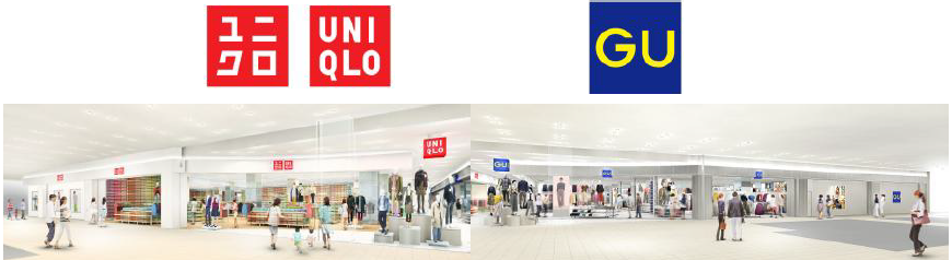 1階ウエストモールの「ユニクロ」と「GU」は、あわせて約6500㎡(1970坪)の広さの店舗となる。店内には地元で有名な「大川家具」とコラボレーションしたレストスペースを設ける。