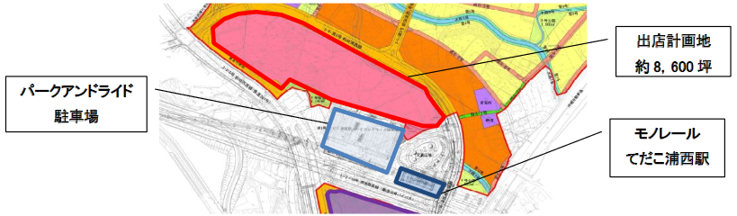 計画地は沖縄都市モノレール最終駅のてだこ浦西駅に隣接した場所だ。周辺の土地区画整理事業や西原町、西原西地区土地区画整理事業とも隣接しているため、今後人口増加が見込まれる。