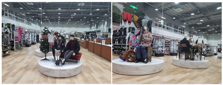 商品は季節やトレンドに合わせた売場演出やマネキンなどでコーディネートを提案して、常に新鮮味のある売場展開をしていく。また、キッズスペースやおむつ交換台を完備し、小さな子ども連れのお客にとっても買物を楽しめる設備を整えている。
