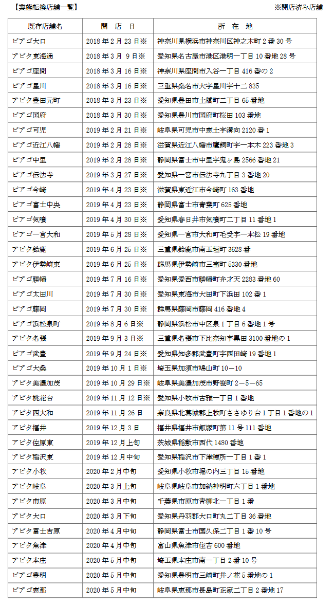 ダブルネームの業態転換店舗は、2018年は6店舗、2019年11月15日時点で19店舗が営業を開始している。また、12月末までにあと4店舗がオープンする計画だ。