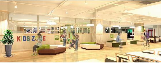 また、フードコートの座席数をこれまでの約1.7倍の約520席に拡大し、「小上がり」席や離乳食用の優先席のほか、ベビーカーを横付けできるテーブルなどを用意する。さらに、家族連れでゆっくり食事を楽しめる「キッズスペース」を新たに設置する。