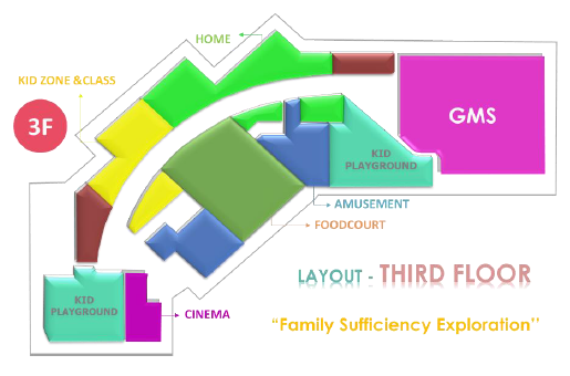 3階はエンターテインメントとフードコート。「CGV CINEMA」「TINI PARK」「KIDZOOONA and TIME ZONE」が地域最大のエンターテインメントゾーンを展開する。ベビー、キッズ、ティーン、アダルトと世代別のコンテンツを取り揃えている。「CGV CINEMA」では本革シートでゆったりとした座席スペースの「Gold Class」のほか、ベッドシートの「L’amour」、高さ13メートルの大型スクリーンを「IMAX」を導入している。