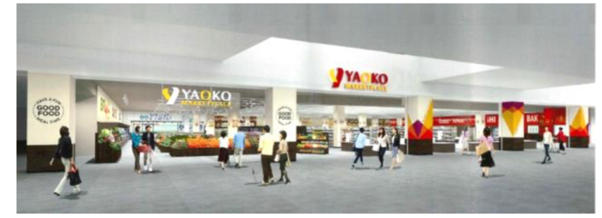 同施設内には食生活提案型スーパーマーケットとして全国随一のヤオコーが2020年春に開業予定である。店づくりを通して新鮮で美味しい生鮮食品、出来立て・つくり立ての惣菜をはじめ、食料品や日用雑貨を「価格コンシャス」対応で展開する。